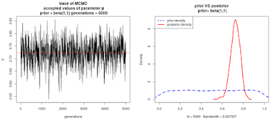 R <- likelihood(h,n,p_prime)/likelihood(h,n,p) * (dbeta(p_prime,1,1)/dbeta(p,1,1))